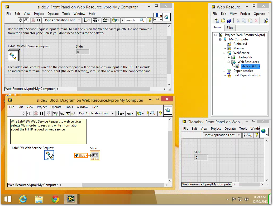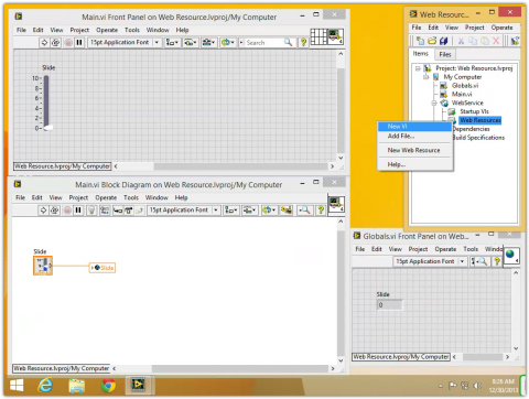 Add a Web Service to the project. Right click on Web Resources then New VI. The name of this new VI cannot have special characters or spaces.