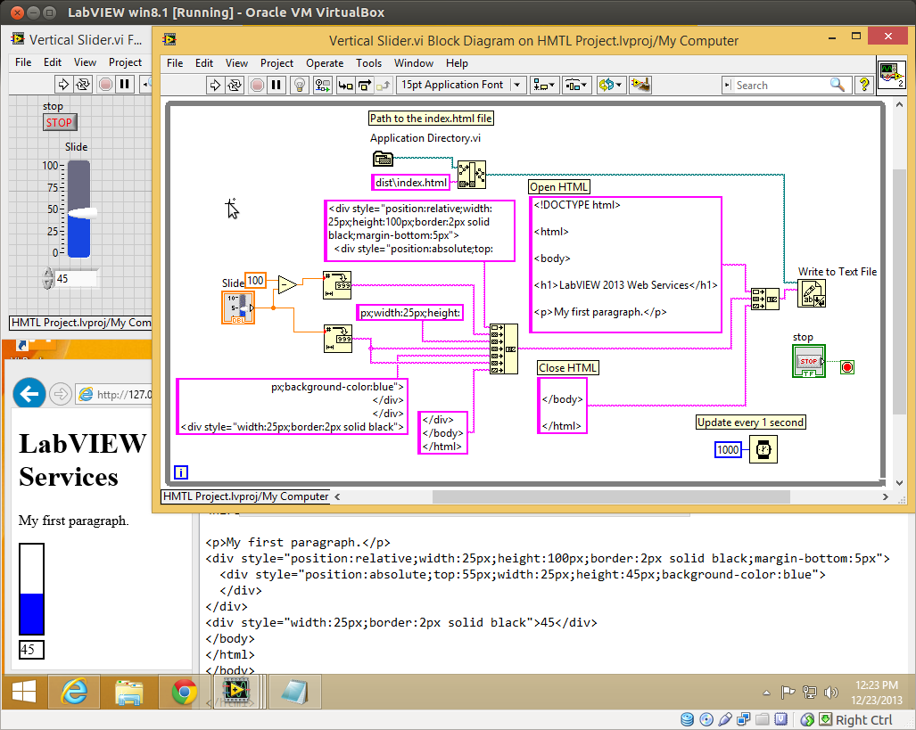 By manipulating the HTML and CSS it is possible to recreate most of the LabVIEW front panel controls. In this example I will show you how to recreate a crude, but functional, Vertical Progress Bar. The same techniques can be used to recreate most of the front panel controls.